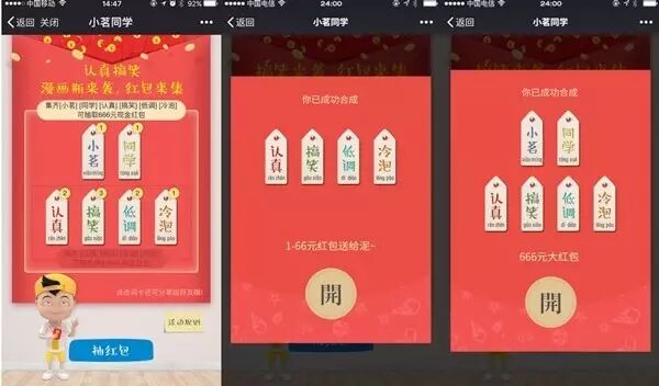 集齐【小茗】【同学】【认真】【搞笑】【低调】【冷泡】六张词卡就能得到666元现金红包。